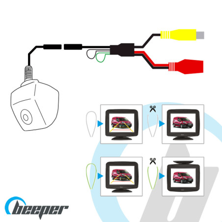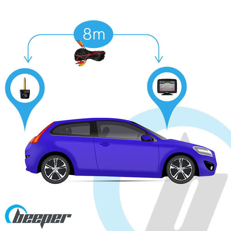 The 8m cable supplied in the BEEPER RW037-P pack allows for installation in passenger vehicles, but also in commercial vehicles. A simple 2-wire connection and your reversing video is operational.