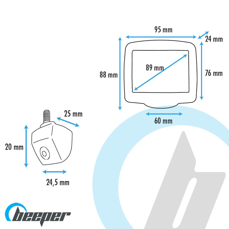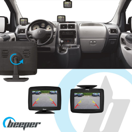 The BEEPER RW037-P is equipped with a mini LCD screen of 3.5 inches (9 cm) and a camera on a plate, which you will install directly between your number plate and the boot compartment of your vehicle.