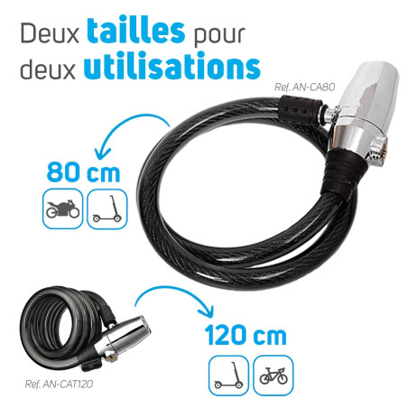 Thanks to its 110 db siren, the anti theft cable AN-CA80 ensures that you are informed in case of attempted break-ins of your product.
