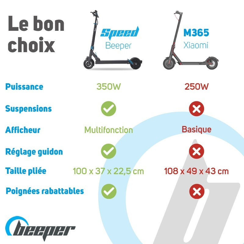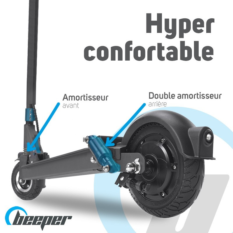 The Beeper SPEED electric scooter is the ideal scooter for all your trips in the city, whether for leisure or daily commuting. It will allow you to move around in comfort and safety thanks to its 350W motor and its various features & equipment.
