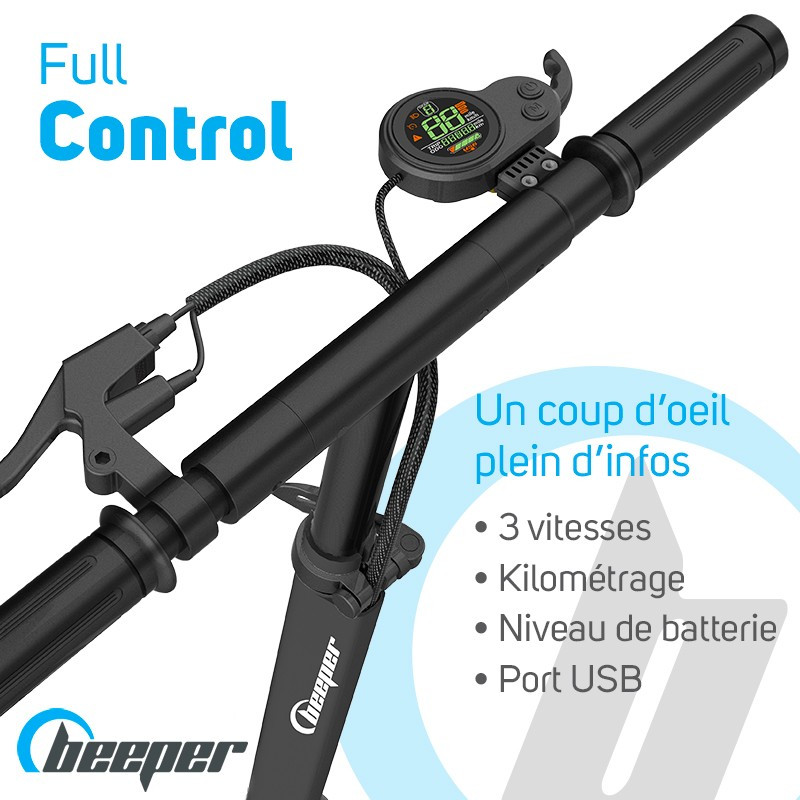 The Beeper MAX has a 3 speed menu, to reach a maximum speed of 25 km/h :