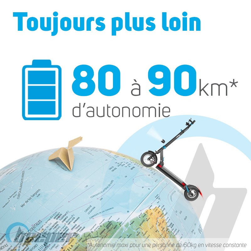 Indeed, depending on the chosen version (8 Ah or 26 Ah), Depending on the version you choose (8 Ah or 26 Ah), you can travel between 35 and 90 km on a single charge.*