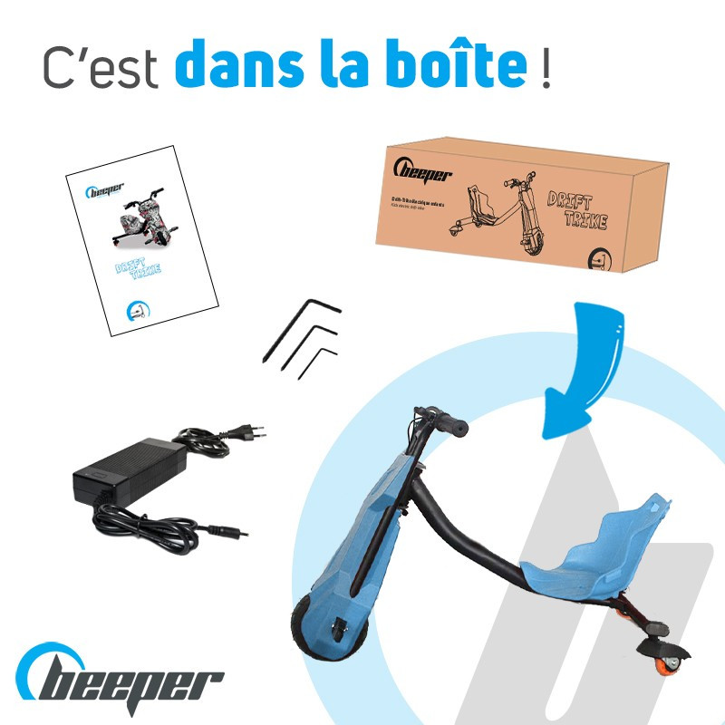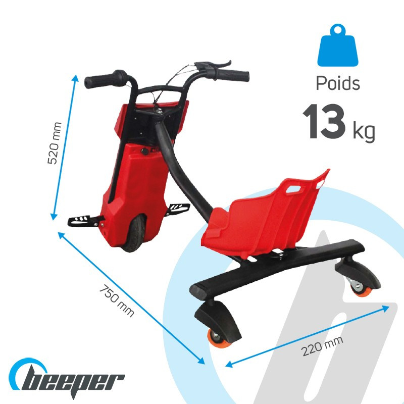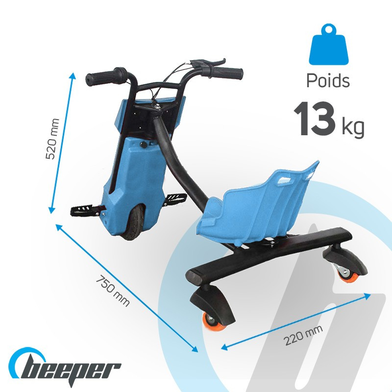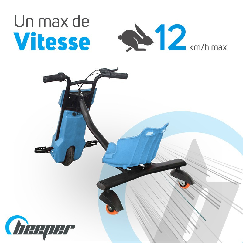 As we mentioned at the beginning, the Beeper drift-trike has 3 wheels and is therefore similar to an electric tricycle, offering your child more stability and removing the fear of falling when using this type of vehicle.