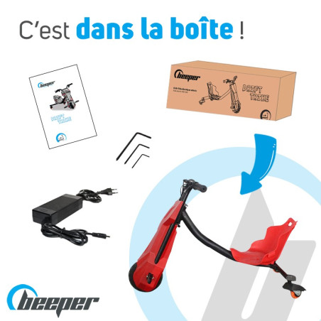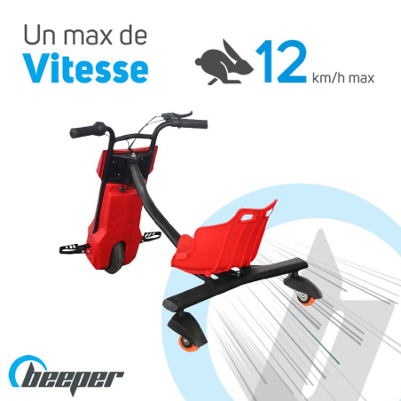 As we mentioned at the beginning, the Beeper drift-trike has 3 wheels and is therefore similar to an electric tricycle, offering your child more stability and removing the fear of falling when using this type of vehicle.