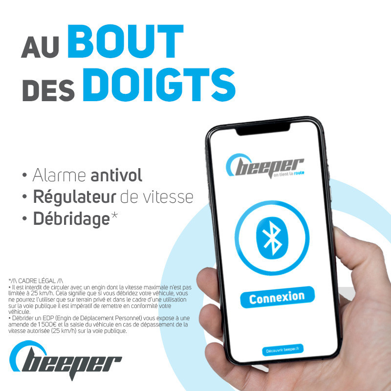 Sound Dedicated iOS and ANDROID APP will give you a total control of your scooter Beeper PRIME fingertips.