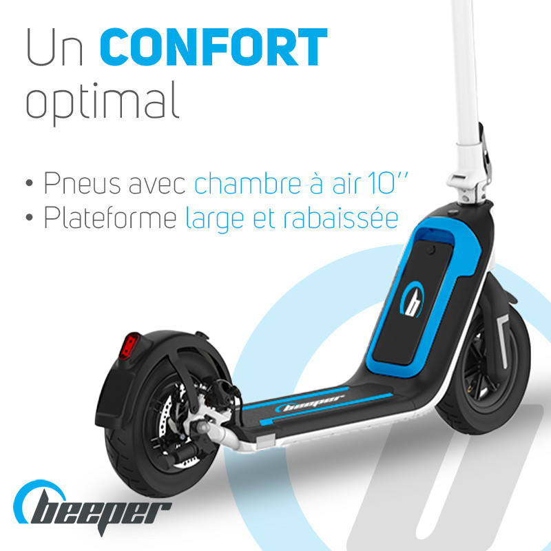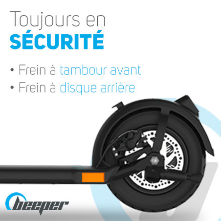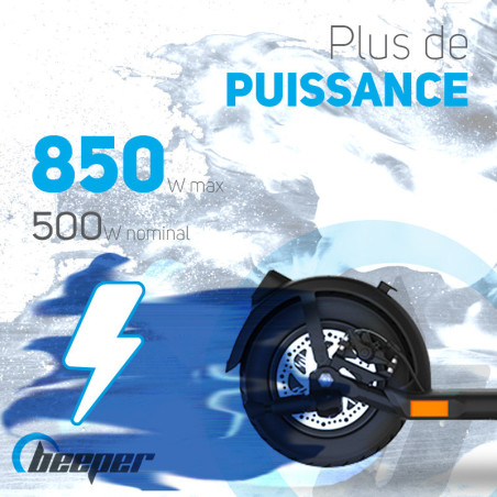 The scooter Beeper PRIME is equipped with a brushless motor with a 850W maximum peak power for a rated power of 500W.