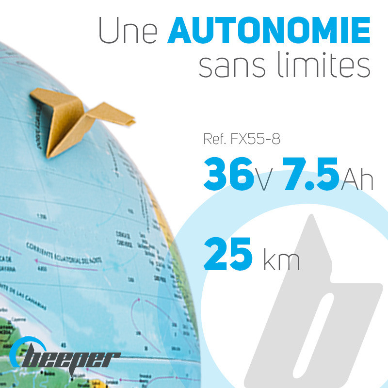 - A battery36V 7.5AhFor aautonomyFrom25 km(Ref. FX55-8/B, FX55-8/W)