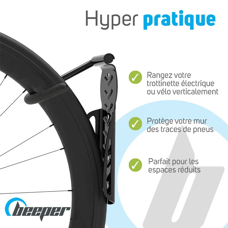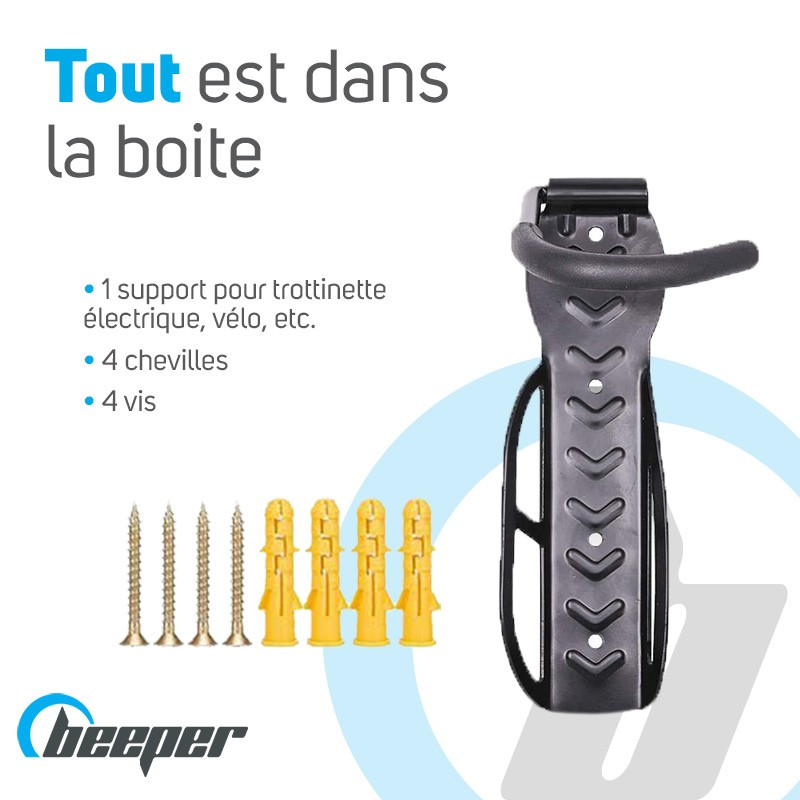 Compacto, resistente y práctico, nuestro soporte de pared con placa es ideal para guardar su scooter eléctrico, bicicleta o vehículo de dos ruedas en su garaje o piso, cochera, sótano, casa o tienda para ahorrar el máximo espacio posible.