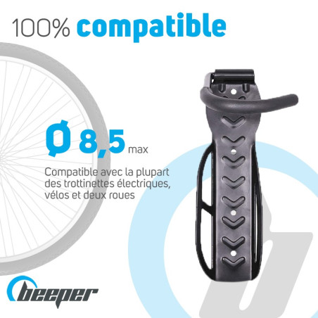 Nuestro soporte es adecuado para la mayoría de las ruedas con un diámetro máximo de 8,5 cm.