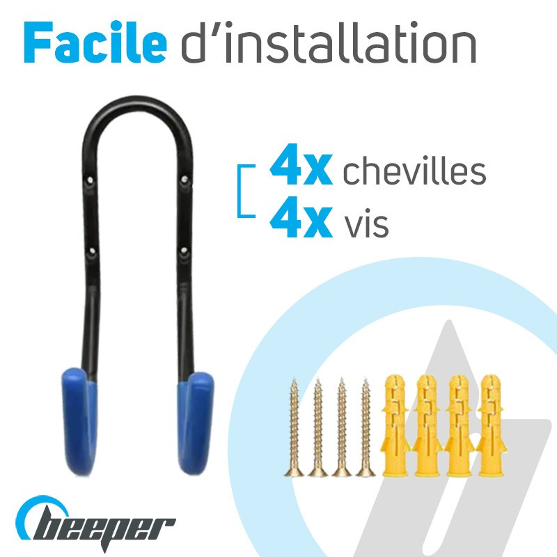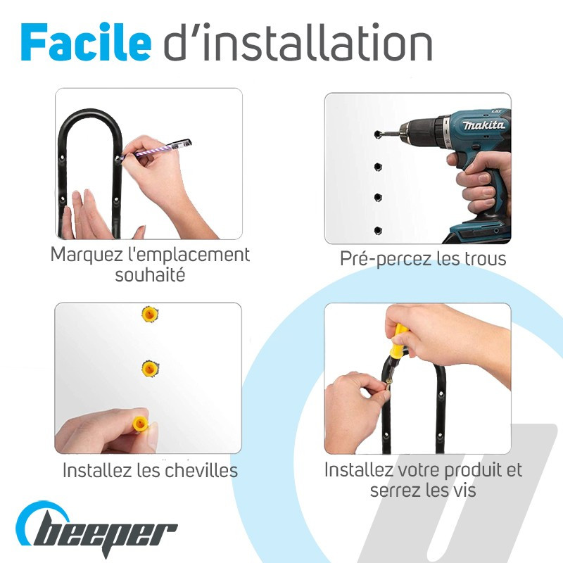 De tamaño reducido pero muy resistente, este soporte tubular de pared para vehículos de dos ruedas es muy fácil de instalar gracias a sus orificios preperforados.