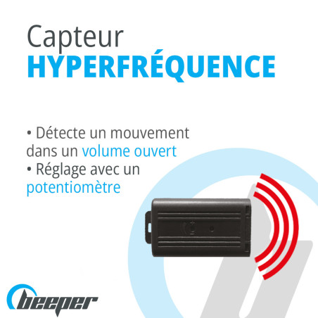 El sensor de microondas está especialmente indicado para proteger descapotables o espacios abiertos. Puede detectar el movimiento en un volumen abierto dentro de un perímetro definido, por ejemplo, se detectará un brazo que entre en el campo. También puede utilizarse para grandes volúmenes cerrados (por ejemplo, vehículos comerciales).