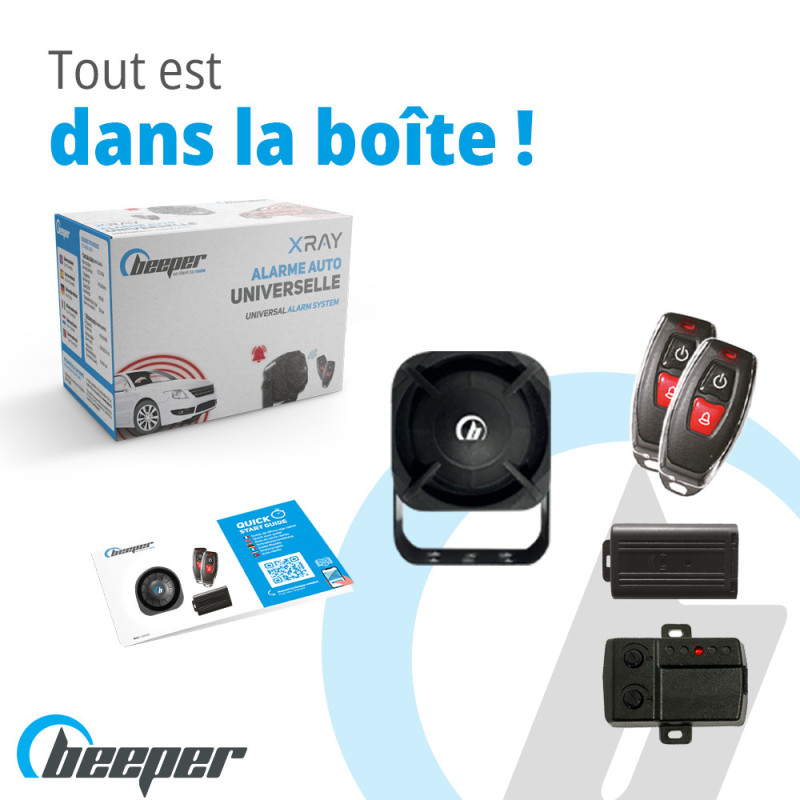 Conectar la alarma de coche BEEPER XRAY XR5CAB es sencillo y sólo le llevará 30 minutos. Sólo tiene que conectar los dos cables de la sirena a la batería de su vehículo y, a continuación, conectar el sensor de hiperfrecuencia a un + 12V permanente y a una toma de tierra (-).