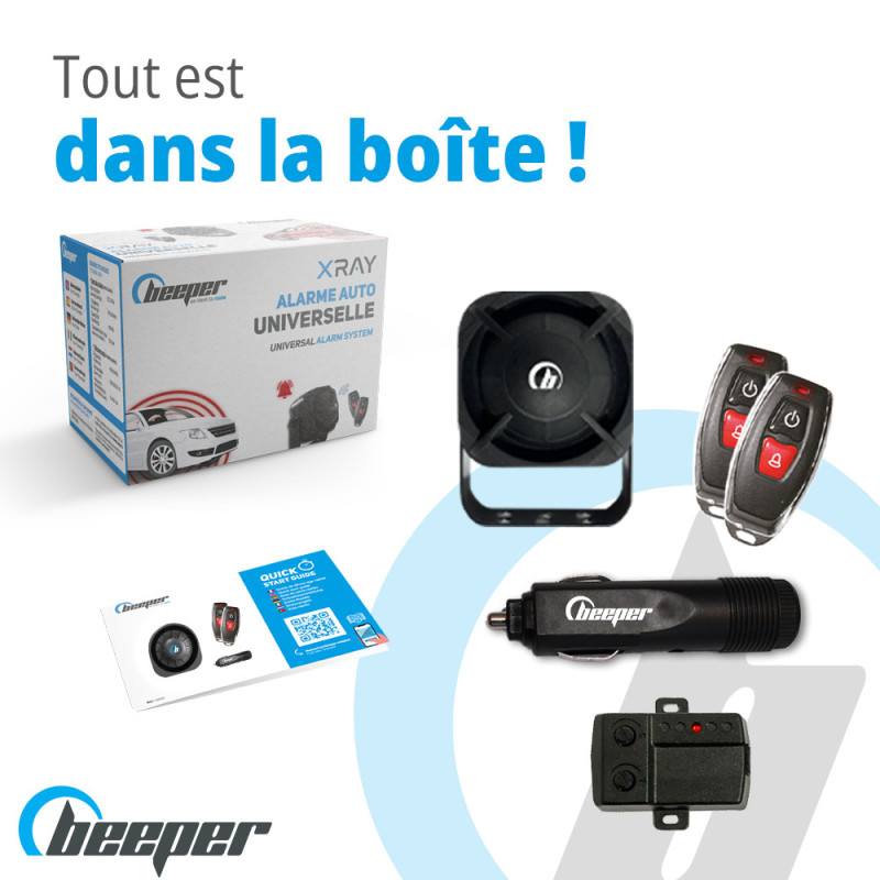 La alarma de coche BEEPER XRAY XR5 es un sistema sencillo y eficaz. La comunicación entre los distintos elementos se realiza mediante transmisión por radio RFID (identificación por radiofrecuencia) lo que permite una instalación de un sistema completo con sólo 2 cables. El Beeper XRAY XR5 es por tanto 100% universal y 100% libre de riesgos para su vehículo.