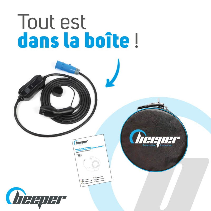 Encuentre la lista (indicativa y no exhaustiva) de compatibilidad de los cables de carga para vehículos eléctricos e híbridos enchufables con una toma de corriente de tipo 2 en nuestro minisitio dedicado www.beeperecharge.com.