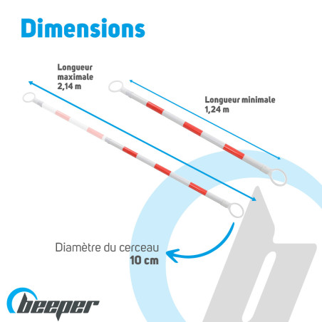 La barra extensible Beeper es perfecta para crear una barrera entre dos conos de tráfico.