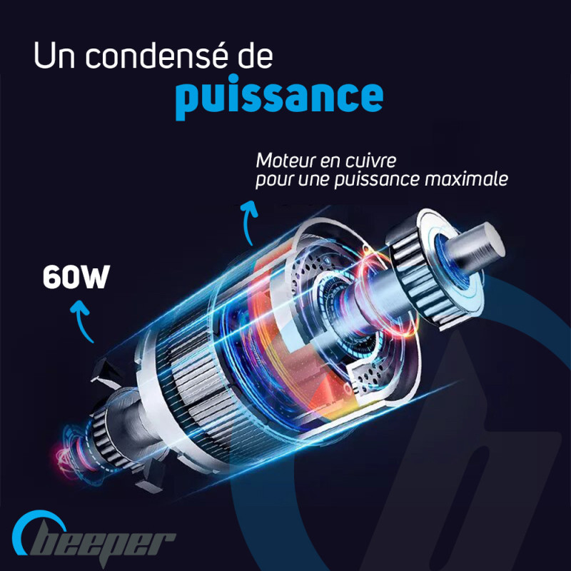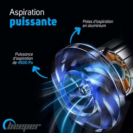 No me malinterpreten, el hecho de que sea pequeño en estatura no significa que no sea poderoso. Equipada con un motor de cobre de 60W, nuestra mini vacío sin cable te brinda una potencia de succión de 4500 Pa, para que puedas atrapar toda la suciedad en un abrir y cerrar de ojos, incluso las más pequeñas.