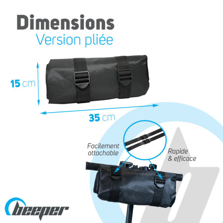 Ce sac de transport est ultra compact, il se plie et peut grâce à deux lanières se fixer sur votre engin de déplacement lorsque vous n'en n'avez pas besoin.