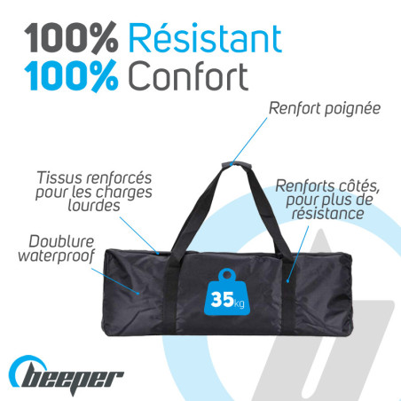 Il est renforcé aux anses de transport ainsi que sur les côtés pour plus de sécurité lorsque vous transportez votre engin de déplacement.
