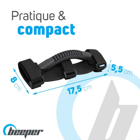 Compacta y práctica, nuestra asa de transporte universal es ideal para los propietarios de scooters eléctricos o bicicletas plegables que buscan una forma eficaz y adecuada de transportar su dispositivo de movilidad personal.
