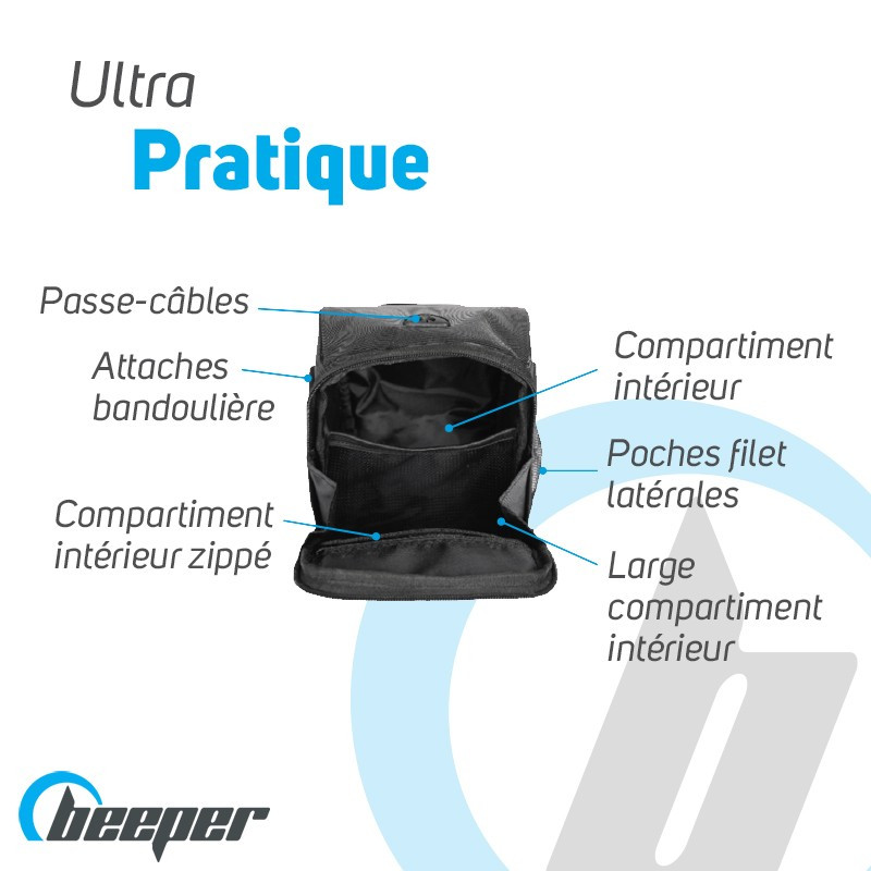 Compacte, design et pratique, notre sacoche est universelle et s'adaptera sur la plupart des deux-roues du marché pour une utilisation simplifié de votre outil de transport.