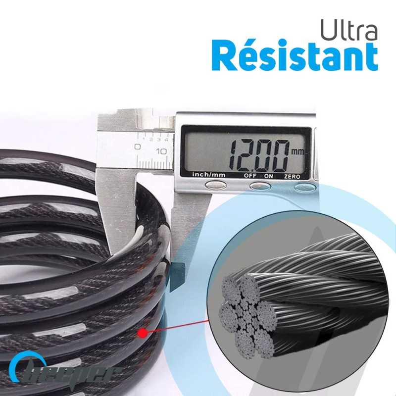 Resistente a la rotura y al calor, está diseñado con un cable blindado para garantizar una seguridad óptima.