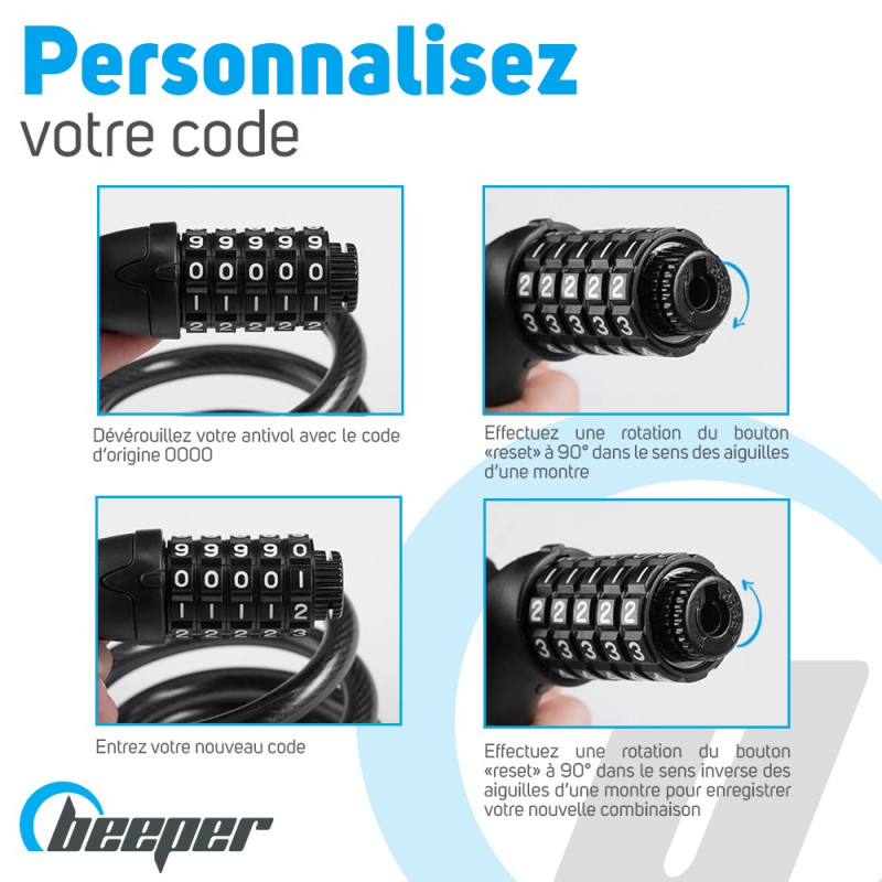 Esta cerradura con código se compone de un código de 4 dígitos para asegurar eficazmente su vehículo.