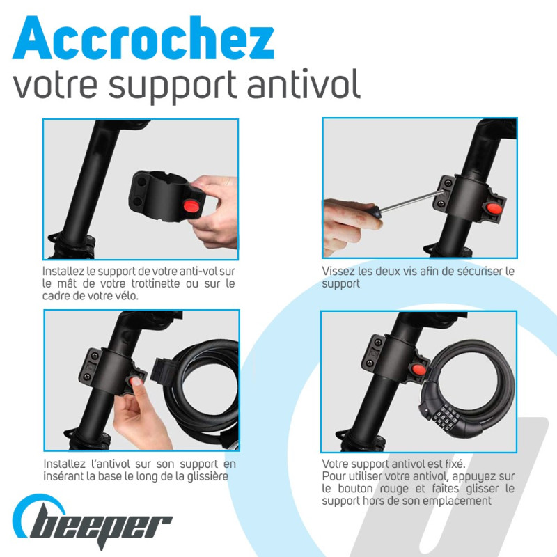 Este candado con código es perfecto para asegurar su scooter eléctrico o su bicicleta.