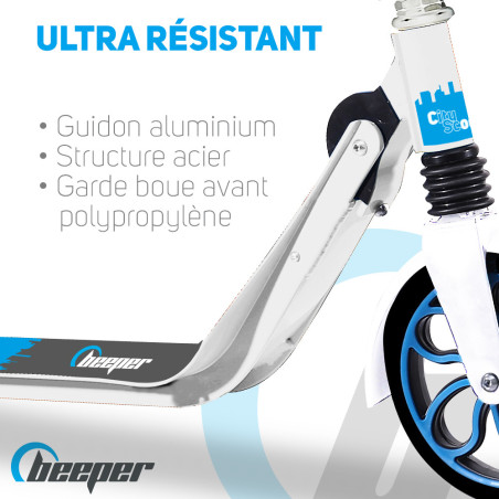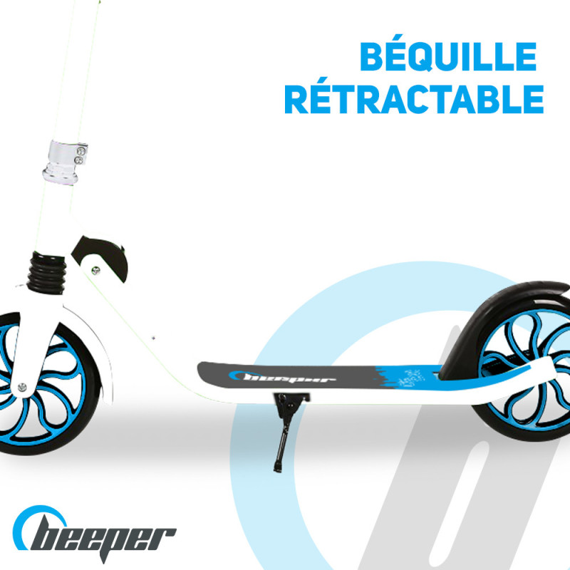 El scooter Beeper para adolescentes y adultos dispone de un freno de pie trasero y, según el modelo, de un freno delantero en el manillar, para mayor seguridad en la conducción.