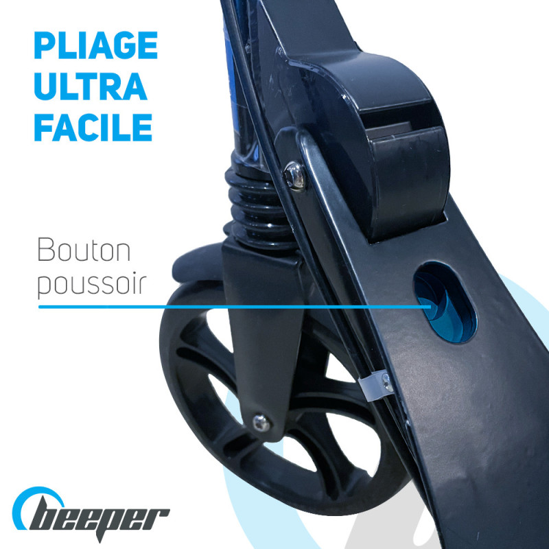 El scooter para adolescentes y adultos Beeper se pliega en un abrir y cerrar de ojos gracias a su botón pulsador.