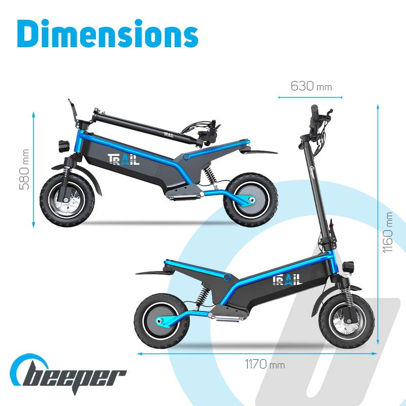 El scooter Beeper TRAIL está equipado con un motor sin escobillas con un potencia máxima de pico de 850W para una potencia nominal de 500W.