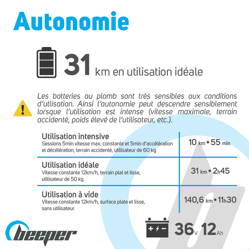 - Económico (Ref. FX1000), ideal para cursos cortos batería de plomo-ácido - 25 a 30 km de autonomía*