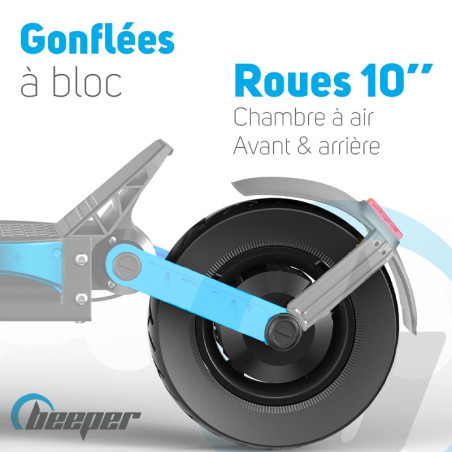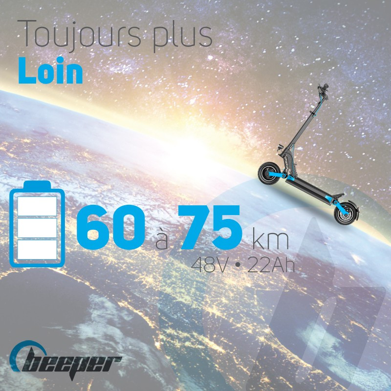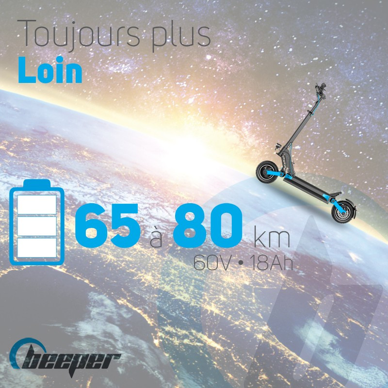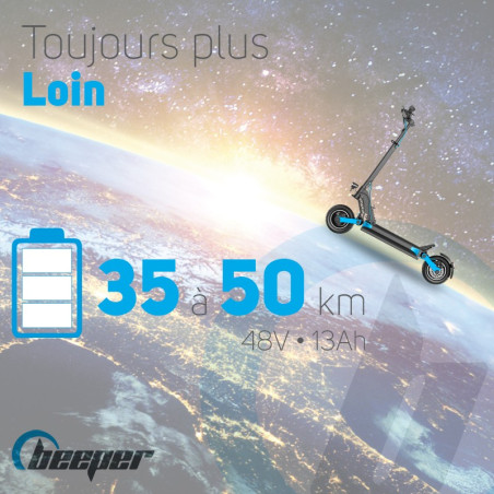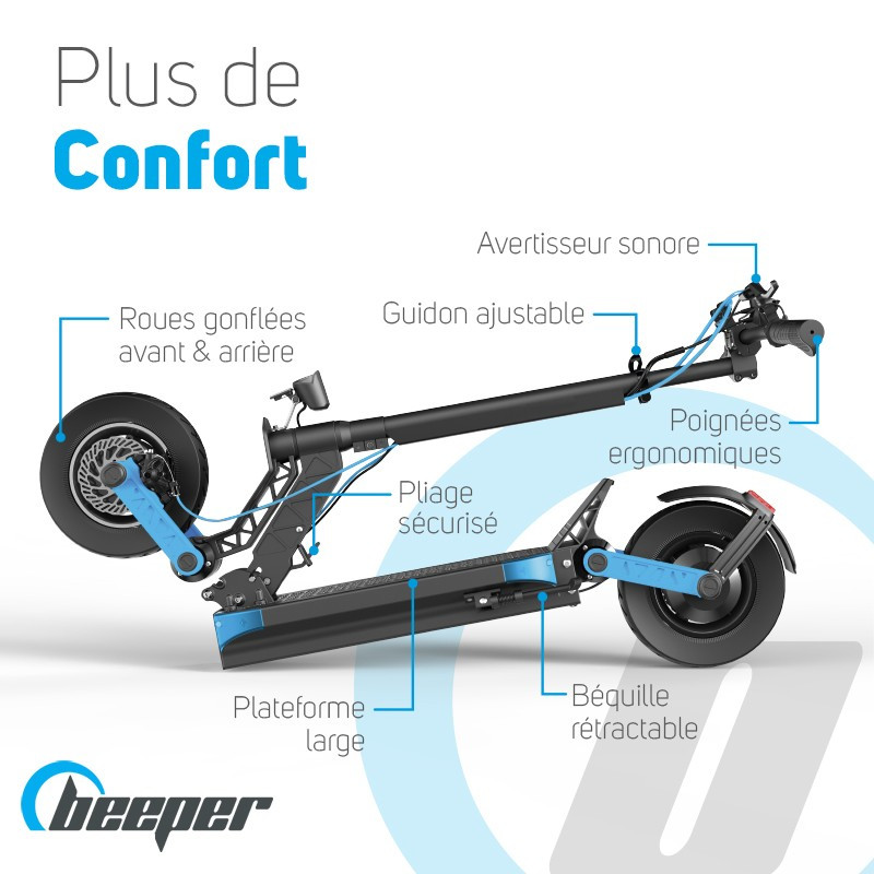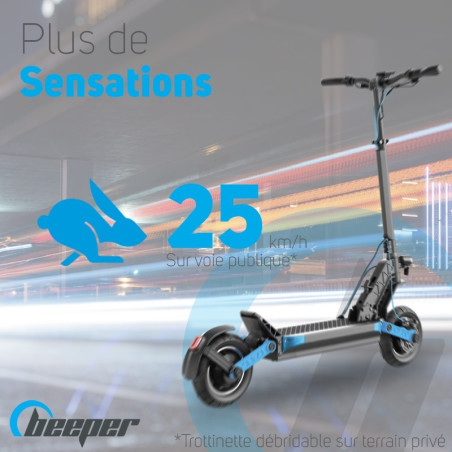 El scooter eléctrico Beeper PRO Es el scooter ideal para todos sus desplazamientos, ya sea en la ciudad o en el campo, en la carretera o fuera de ella. Sus brazos de suspensión, su doble motor (según el modelo) y su comodidad le seducirán para convertirla en su aliada diaria.