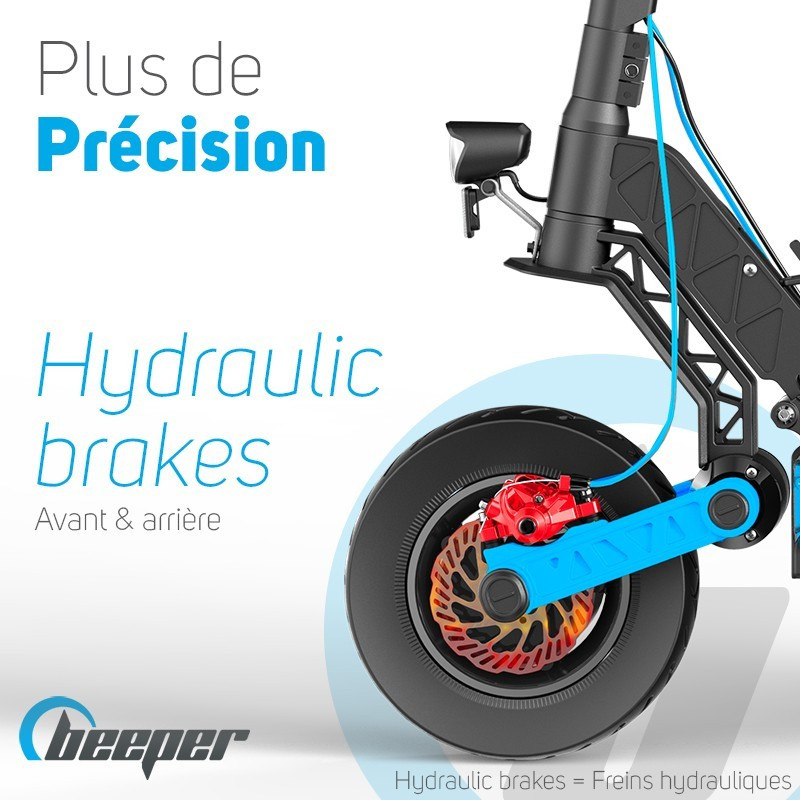 El Beeper PRO Está equipado con el sistema Frenos hidráulicos* Lo que permite frenar con más morder y precisión. Este sistema más avanzado permite una transferencia más lineal y progresiva de la fuerza de frenado, proporcionando un confort adicional en la conducción.