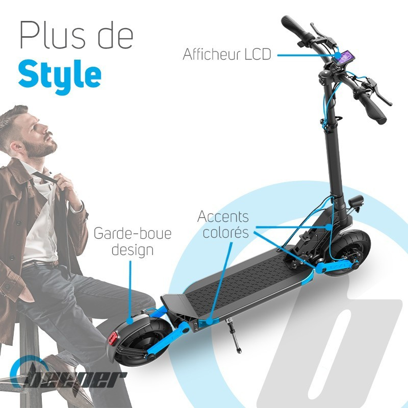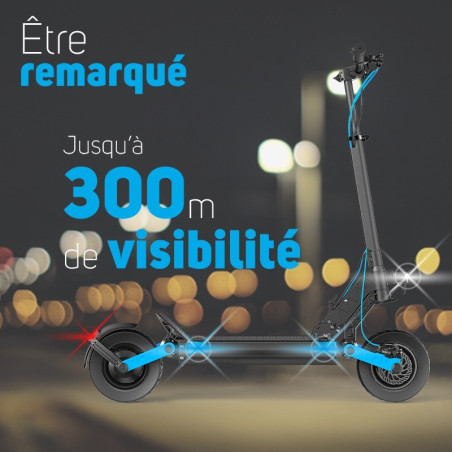 - Conduzca de día o de noche, gracias a su luces LED Integrado en el antes, L'trasera y laterales - Advierta a otros usuarios de su presencia con su aviso sonoro (campana) - Frena sin derrapar gracias a su frenos de disco o hidráulicos (según el modelo) - Manténgase firme con su amplia plataforma antideslizante - Mantenga su scooter compacto con su plegado seguro. - Dimensiones desplegadas 124,5 x 61 x (95-130) cm - Dimensiones plegadas 115 x 61 x 50 cm