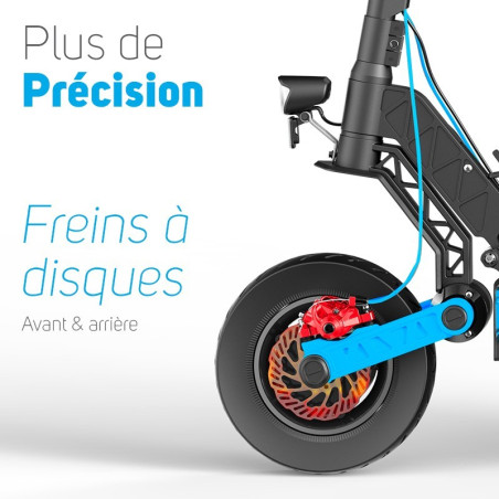 Nuestro scooter eléctrico Beeper PRO es completamente suspendido, su brazos oscilantes dobles permiten un aumento mayor que otros modelos en el estabilidad en las curvas. L'adhesión de su scooter es reforzado y le facilita el paso entre los obstáculos.