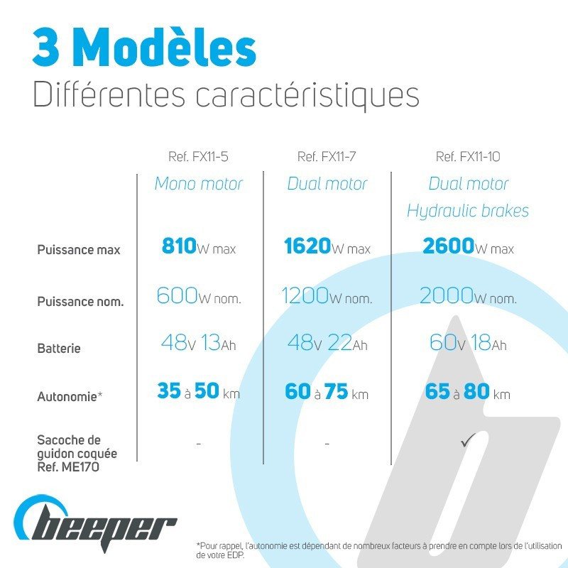 -FX11-10Doble motor 2600W máx (2 x 1000W nominal) - Frenos hidráulicos -Batería 60V 18Ah - Alcance de 65 a 80 km*