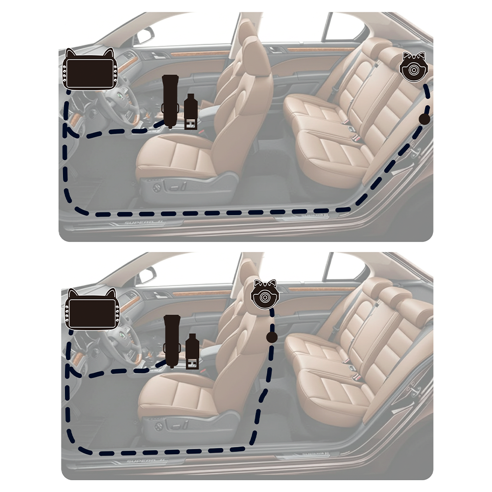 La caméra se fixe généralement à l’aide de sangles ou de supports réglables qui s’adaptent aux appuie-têtes de la plupart des véhicules. L’écran peut être positionné de manière à rester visible sans gêner la conduite.