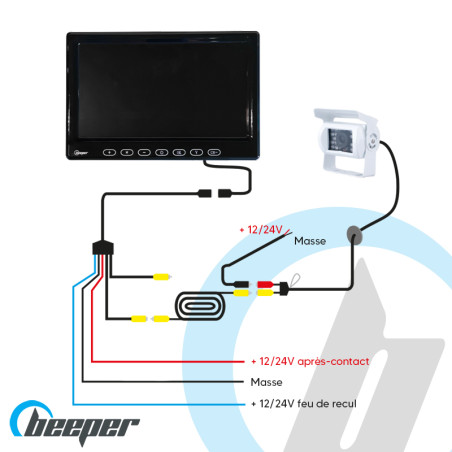En cas d'utilisation en vidéo de recul, veillez à bien connecter votre produit sur un +12/24V feu de recul. Dans ce cas, le produit s'activera automatiquement dès le passage de la marche arrière.