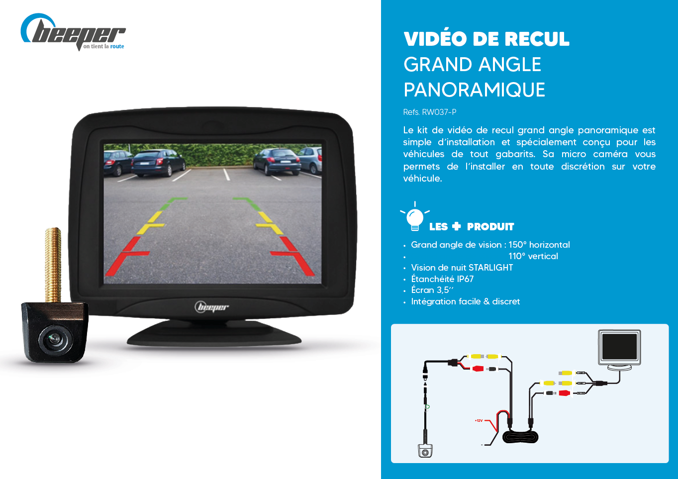 RW037-P • Kit caméra de recul • écran 3,5"