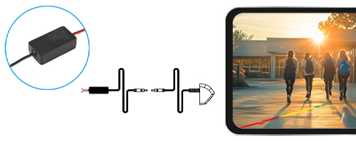 En effet, certains véhicules n’offrent pas un signal +12V FEU DE RECUL franc et permanent, le signal d’origine est sinusoidal et peut perturber le bon fonctionnement de votre caméra de recul.