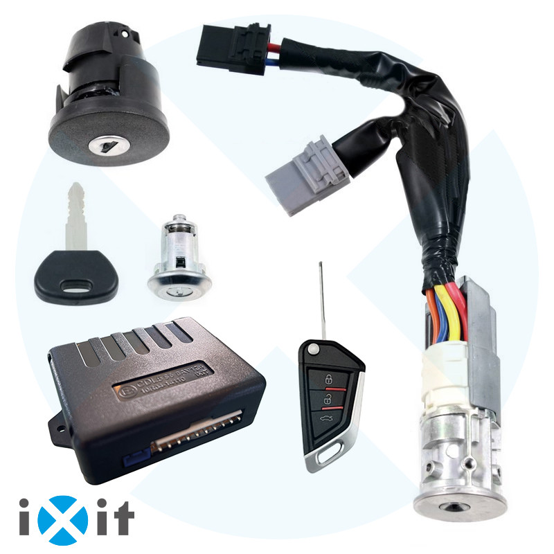 This IXIT kit includes all the necessary components to restore or equip your LIGIER JS64 petrol microcar: a ignition switch, a door lock barrel, a locking fuel cap, a coded flat key, a coded key insert, a 3-button HG remote control, and a central locking module. Designed to meet manufacturer standards, the installation is plug-and-play and requires no additional wiring or soldering.