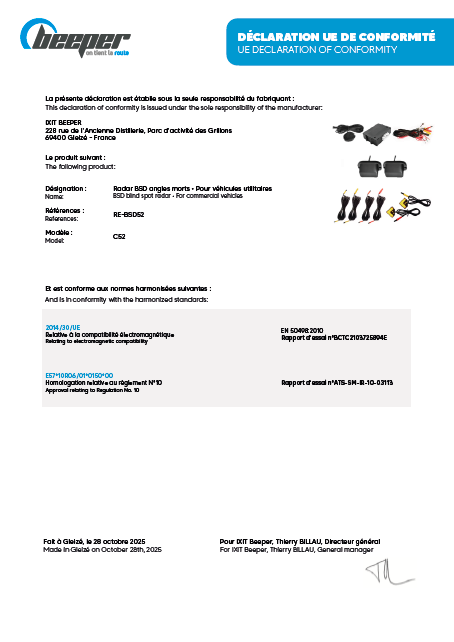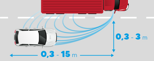 *Disponible avec radar 77 GHZ pour une détection longue de 3 x 30 m. pour PL ou véhicules supérieurs à 9 mètres