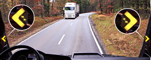 Lorsqu’un véhicule vous dépasse, des indicateurs lumineux placés de chaque coté de la cabine s'allument pour attirer votre attention.