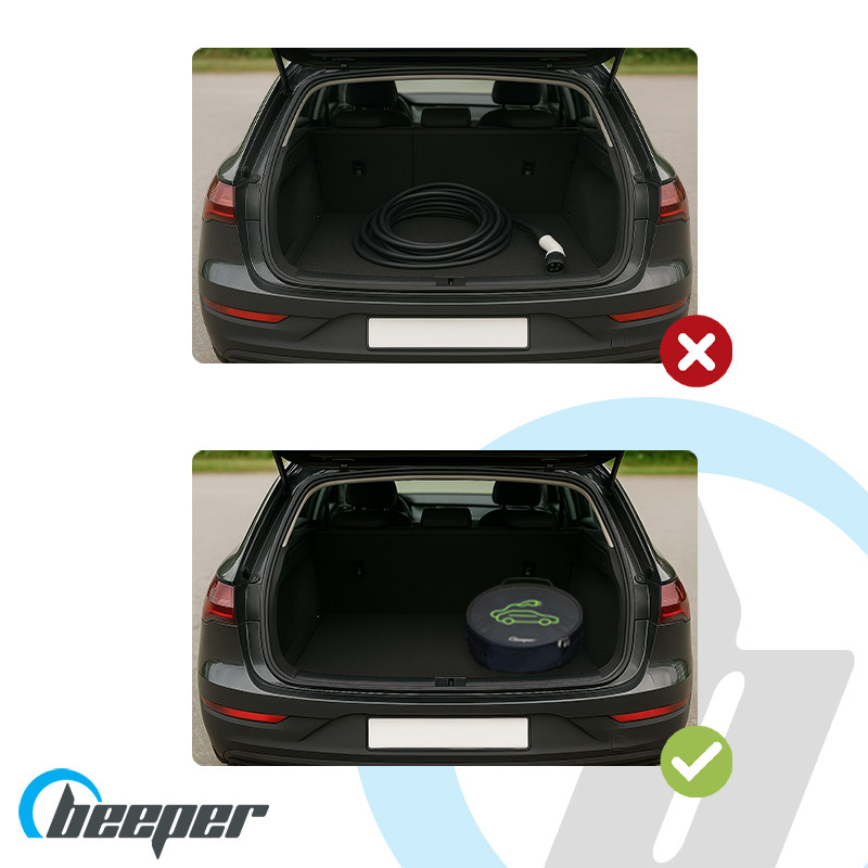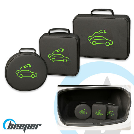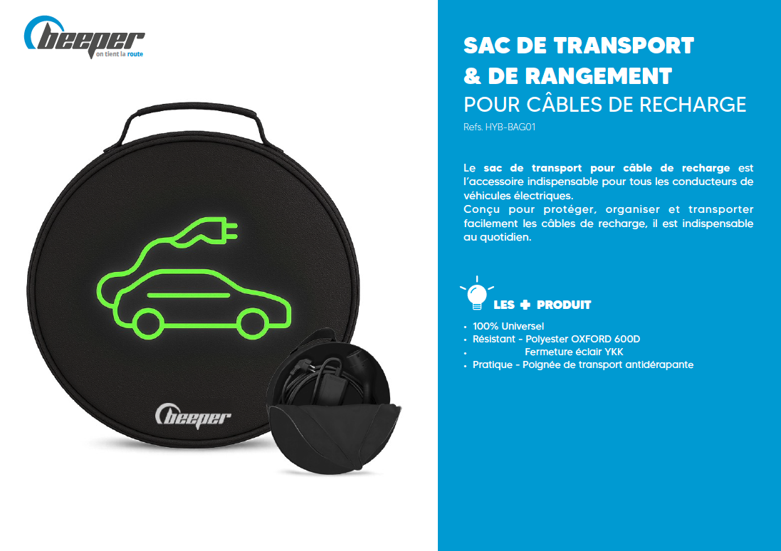 Rangez simplement & efficacement votre câble de recharge dans votre véhicule avec les sacoches de transport Beeper.