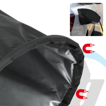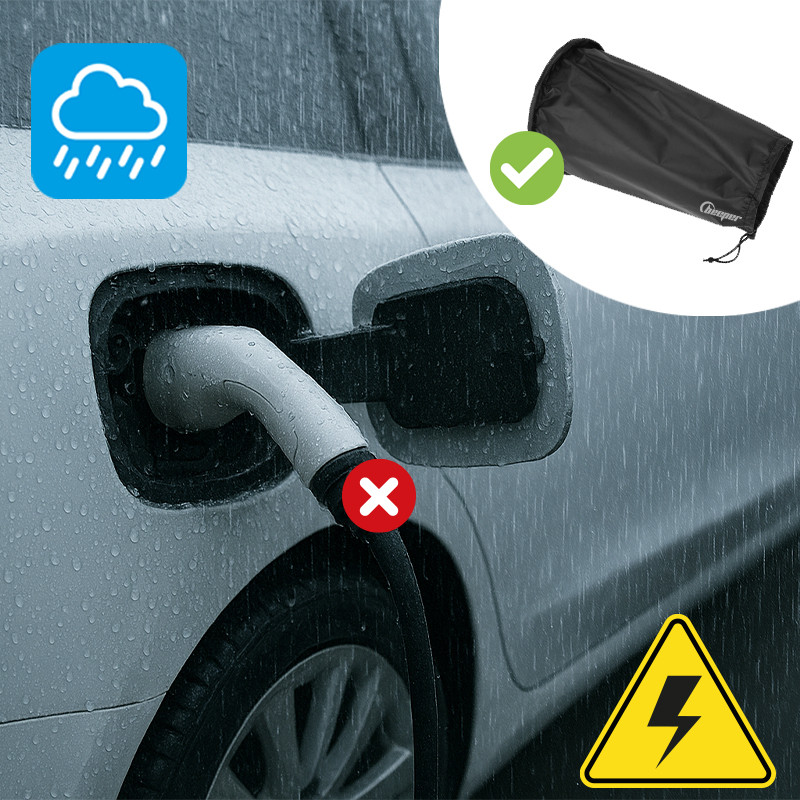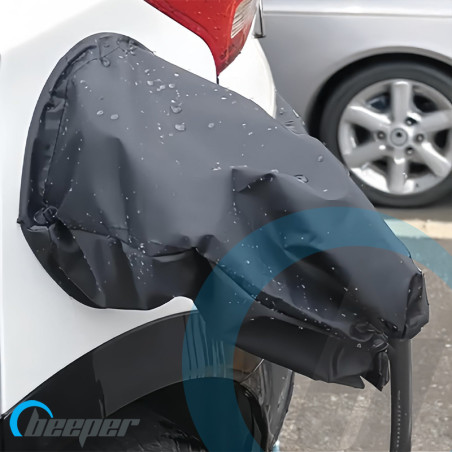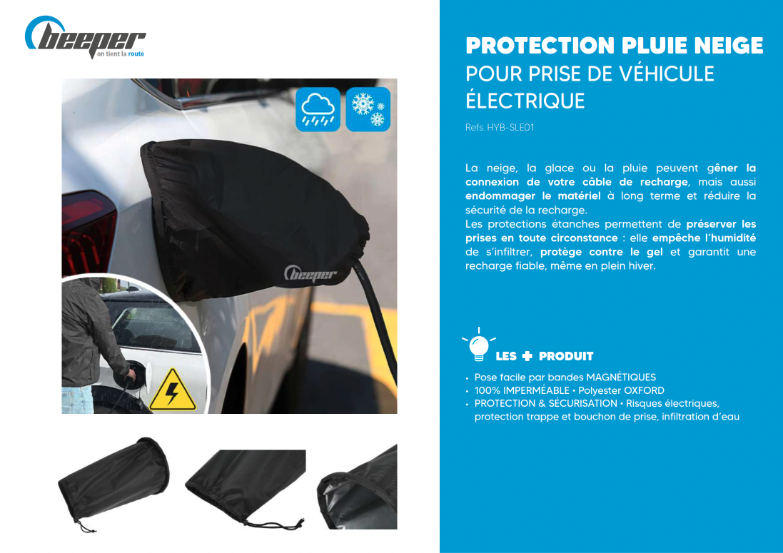 La housse étanche de protection pluie et neige Beeper est conçue pour offrir une protection totale contre l’humidité. Grâce à son matériau en polyester OXFORD, elle est 100 % imperméable, empêchant toute infiltration d’eau, de neige ou d’humidité vers votre connecteur de recharge.
