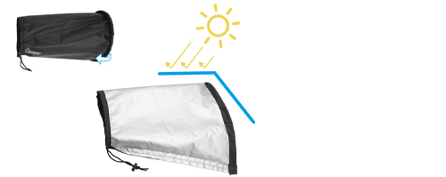 Son tissu spécial réfléchissant agit comme un bouclier contre les rayons du soleil, évitant la surchauffe de la prise et du câble de recharge.