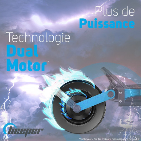 Décuplez la puissance de votre trottinette électrique Beeper PRO grâce à la technologie Dual Motor ; selon votre conduite activez le deuxième moteur de votre trottinette afin d'obtenir plus de puissance et franchir les obstacles en toute facilité.